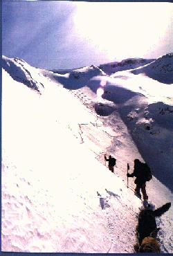 The last day is always the hardest day. We had to climb over 7000 ft to get into the other valley, but what a reward to ski out.